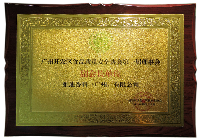 东升国际官网香料(广州)有限公司担当广州开发区食物质量清静协会第一届理事会副会长单位。。。。。。